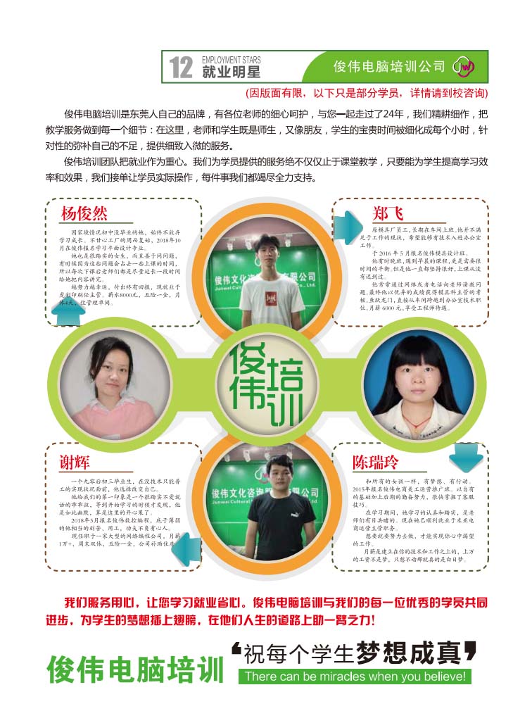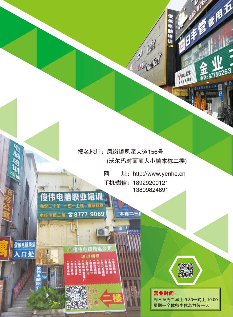 校址:凤岗镇沃尔玛超市对面天桥旁边丽人小镇本栋二楼俊伟电脑职业培训